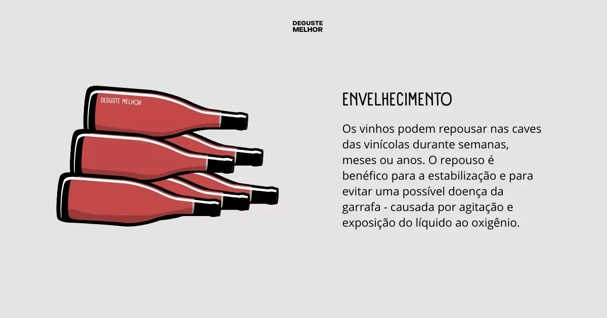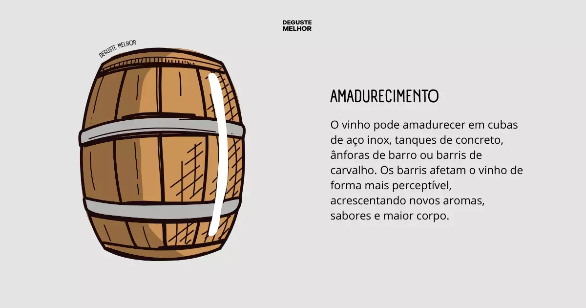 Embora o termo envelhecimento seja bastante utilizado, tecnicamente, quando o vinho passa algum período em barris de carvalho, é correto dizer que houve o amadurecimento do vinho. O envelhecimento é a última etapa do processo de produção, que será detalhado adiante.