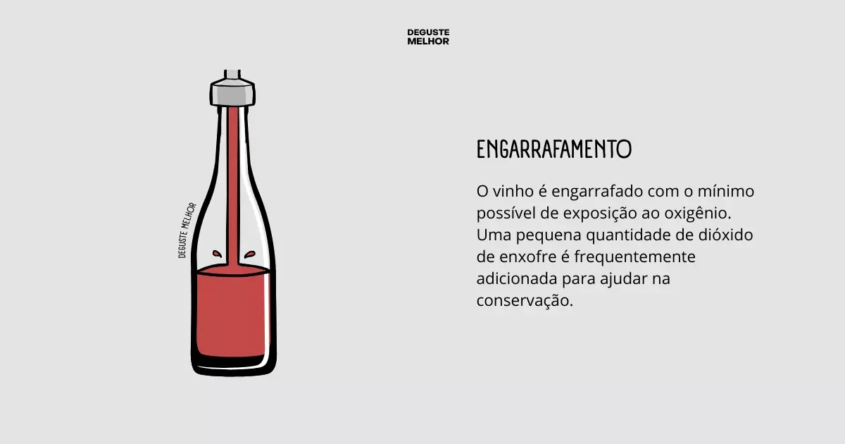 Os vinhos são, então, engarrafados e fechados com todo o cuidado para que a exposição ao oxigênio seja mínima.