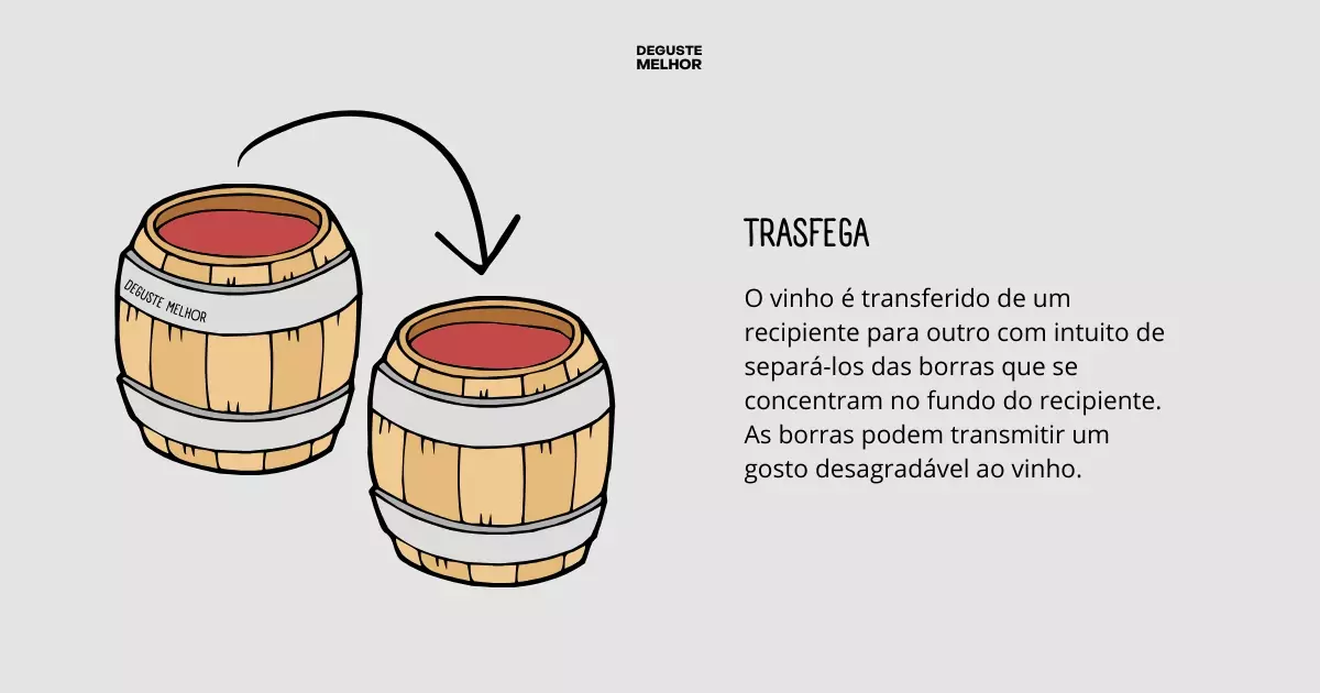 Para evitar que estes resíduos adicionem sabores e aromas indesejáveis ao vinho, ele é transferido para um recipiente limpo. Esta troca de recipiente é chamada de trasfega, e pode ser realizada em diversas etapas durante todo o processo de produção do vinho.