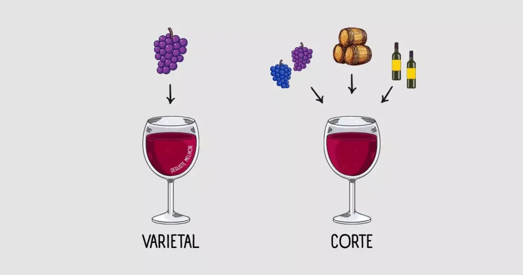 O vinho varietal mostra de forma pura a identidade de uma uva, principalmente se vier de um único vinhedo. Já o vinho de corte combina o melhor de várias uvas, regiões ou processos, oferecendo complexidade e riqueza, tanto aromática quanto de sabor.